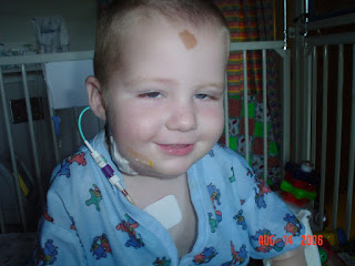 Well..it's been a while since I've posted on this blog. Happy New year by the way! Here's a few pictures of Michael when he had the swollen infected lymph node in the hospital back in August. And one of him after the drainage tube was put in.